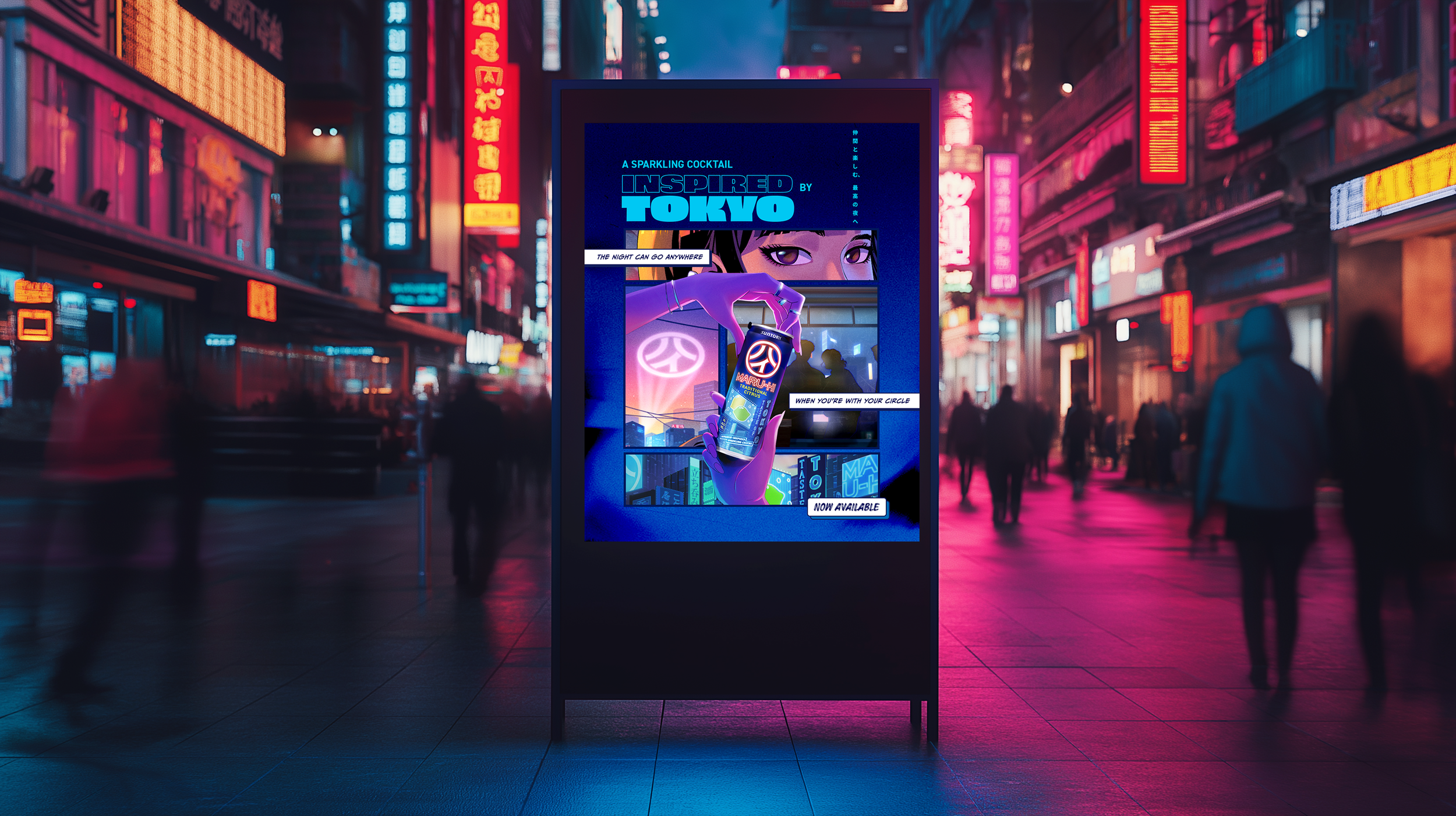 We chose to go in the opposite direction—if everyone else owned the day, we’d take the night. One of the client’s main goals was to make sure the drink felt unmistakably Japanese, so we leaned into that by creating a spot inspired by Japanese graphic novels. It follows our main character, Yuki, and her friend as they set out in search of the perfect night.